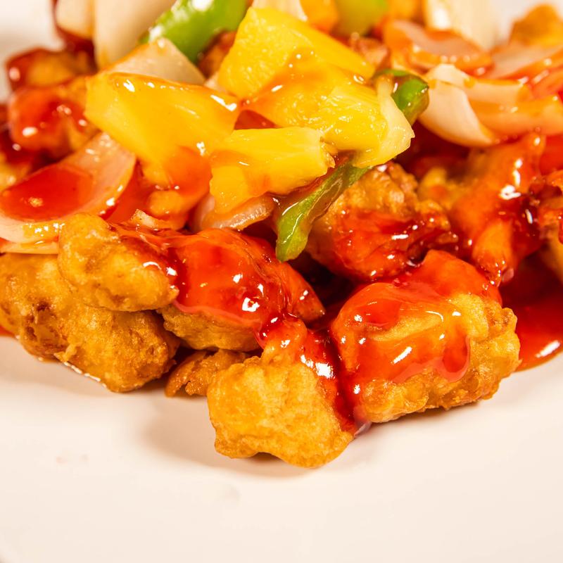 Deep fried in egg batter and blended in our own sweet and sour sauce.