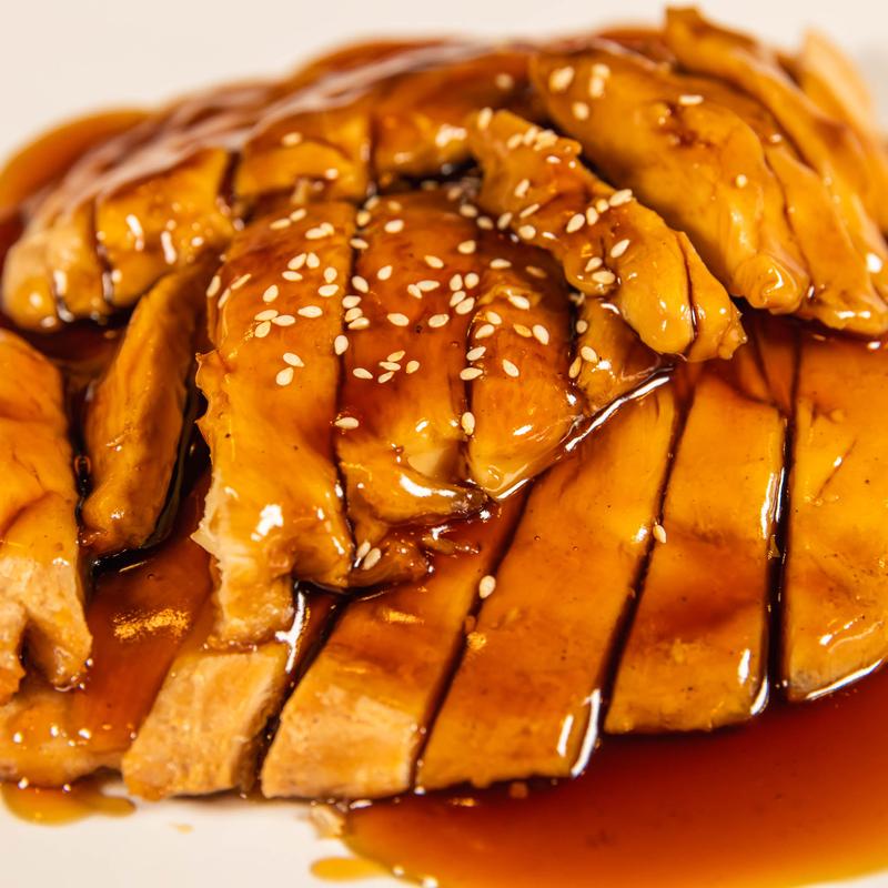 Seasoned in imported Hoi-Sin sauce, sauteed with onions and mushrooms.