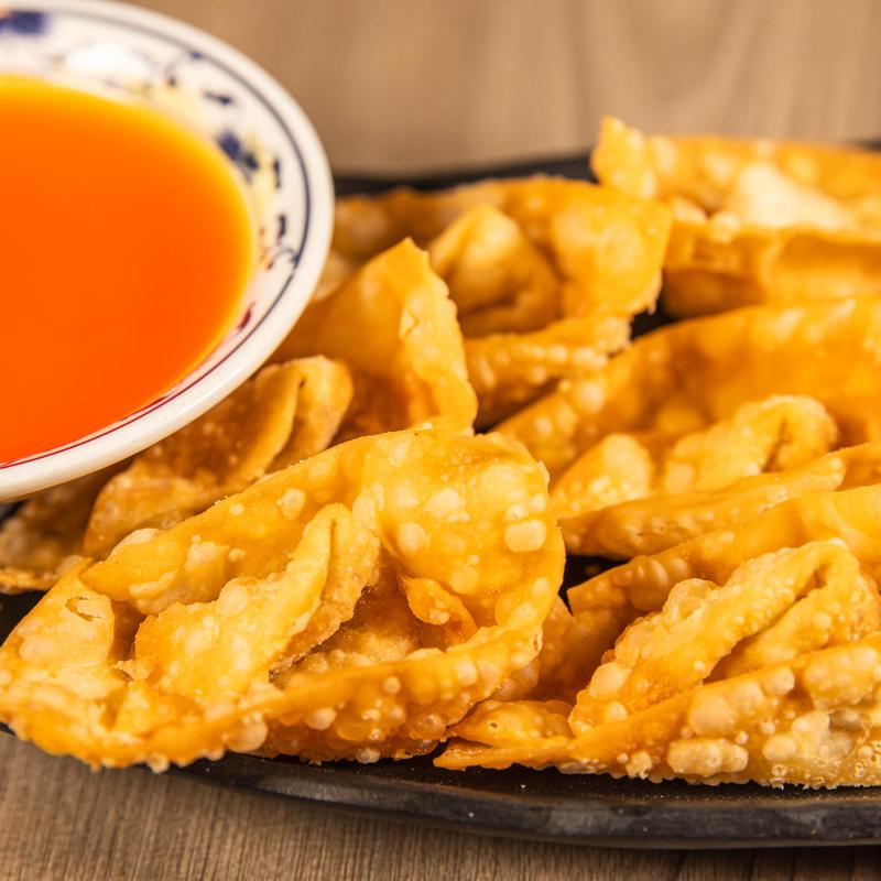 Minimum order for 2 people • Serving: Egg roll (1), Fried shrimp (2), Honey chicken (2), Crab puff (2), and Teriyaki beef (1)